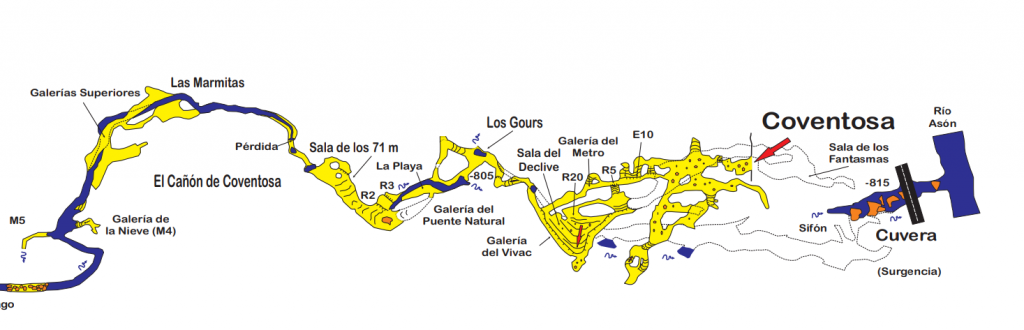 Damos un paso profundizando un nivel más llegando al Río subterráneo de Cubera que atraviesa los niveles inferiores Coventosa y que resurge en el exterior cerca de Asón. Después de visitar La Sala de los Fantasmas empezaremos el circuito. Veremos los Lagos , los Gours y el Sifón de Cubera . Progresaremos por pasamanos , subiendo , bajando , remontando y rapelando sin descanso. Es sin duda una actividad que requiere buena forma física en general. No te preocupes, recibirás la formación técnica necesaria para afrontar con facilidad esta actividad.