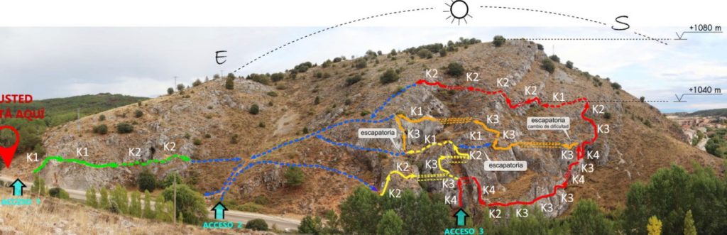 Cuenta con varios recorridos enlazados entre sí, combinable y con escapes señalizados. Desde dificultad K2 a K3.