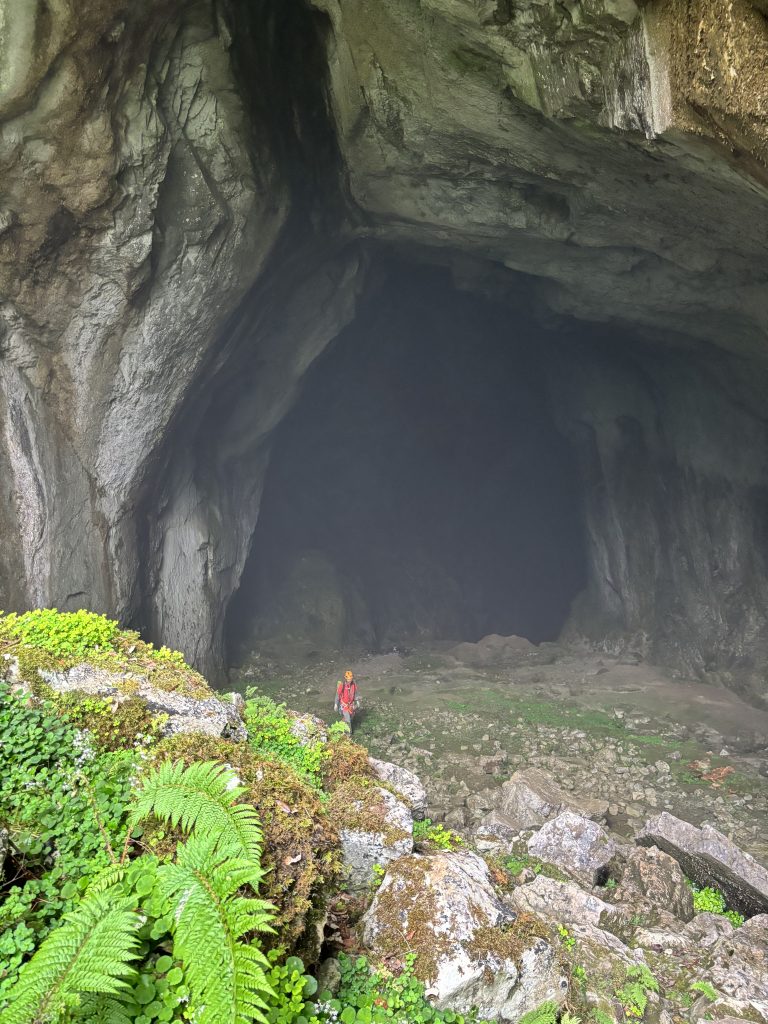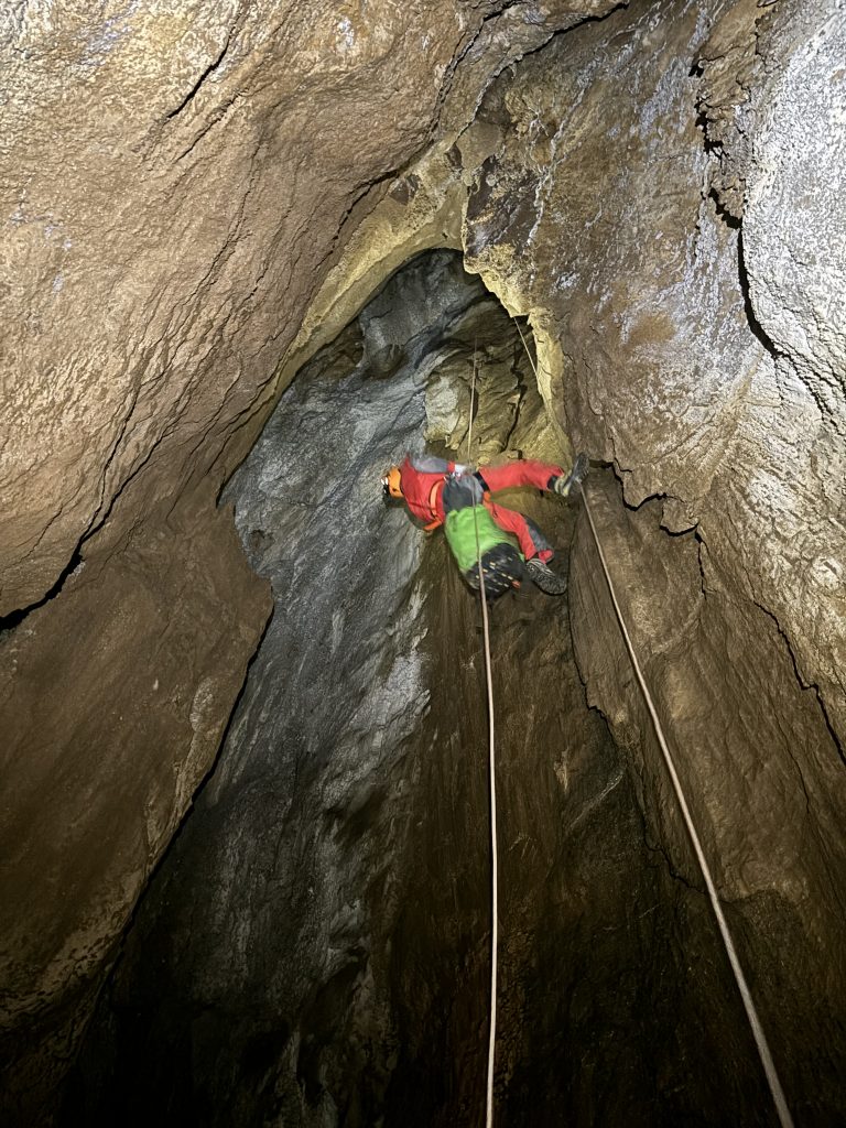 Señores y señoras prepárense para lo que viene : una veintena de rápeles, decenas de pasamanos, subidas , bajadas , pasos en oposición , pozos al vacío…y como no, el paso estrella : La Diaclasa . Se trata de un rápel en la que entras justo y apretado , entre 35 y 45 cm de anchura en sus