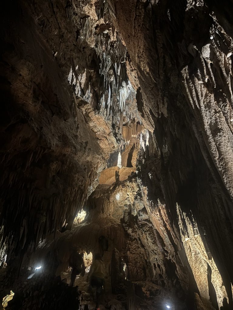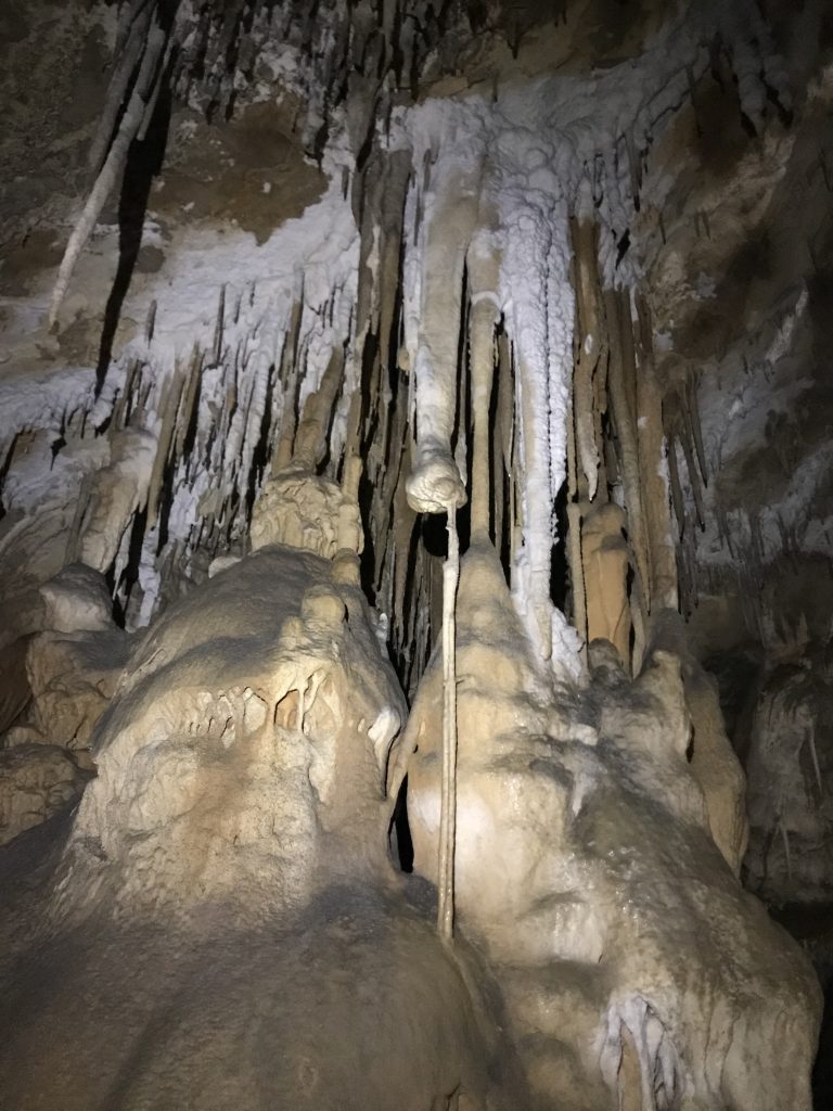 La cueva tiene pasos estrechos y Laminadores repletos de formaciones entre ellas destacan la excéntricas y la Sala de la Joyería.